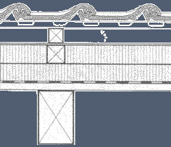 Beispiel 1Die Wärmedämmung ist zwischen den Sparren montiert. Dies heisst,dass die Unterseite der Sparren beinahe Zimmertemperatur aufweist,die Obersiete jedoch beinahe Aussentemperatur. Im Winter ist eineTemperaturdifferenz von 40°C nicht aussergewöhnlich.Die Wärmedämmschicht wird hier durch die Sparren unterbrochen.Es stimmt, Holz isoliert, aber wesentlich schlechter als die üblichenWärmedämm-Materialien. Ausserdem sind die vielen Uebergänge(Wärmedämmung zu Holz) potentielle Schwachstellen.